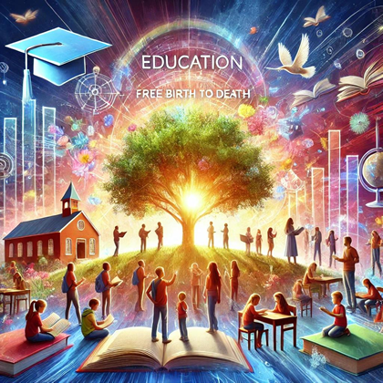 to reboot America. The principal messages include free education from birth to death, 0 deductible