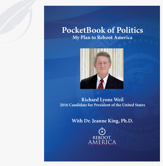 and its democracy. Our manual will be the "Pocketbook of Politics- My Plan to Reboot America" which is my plan
